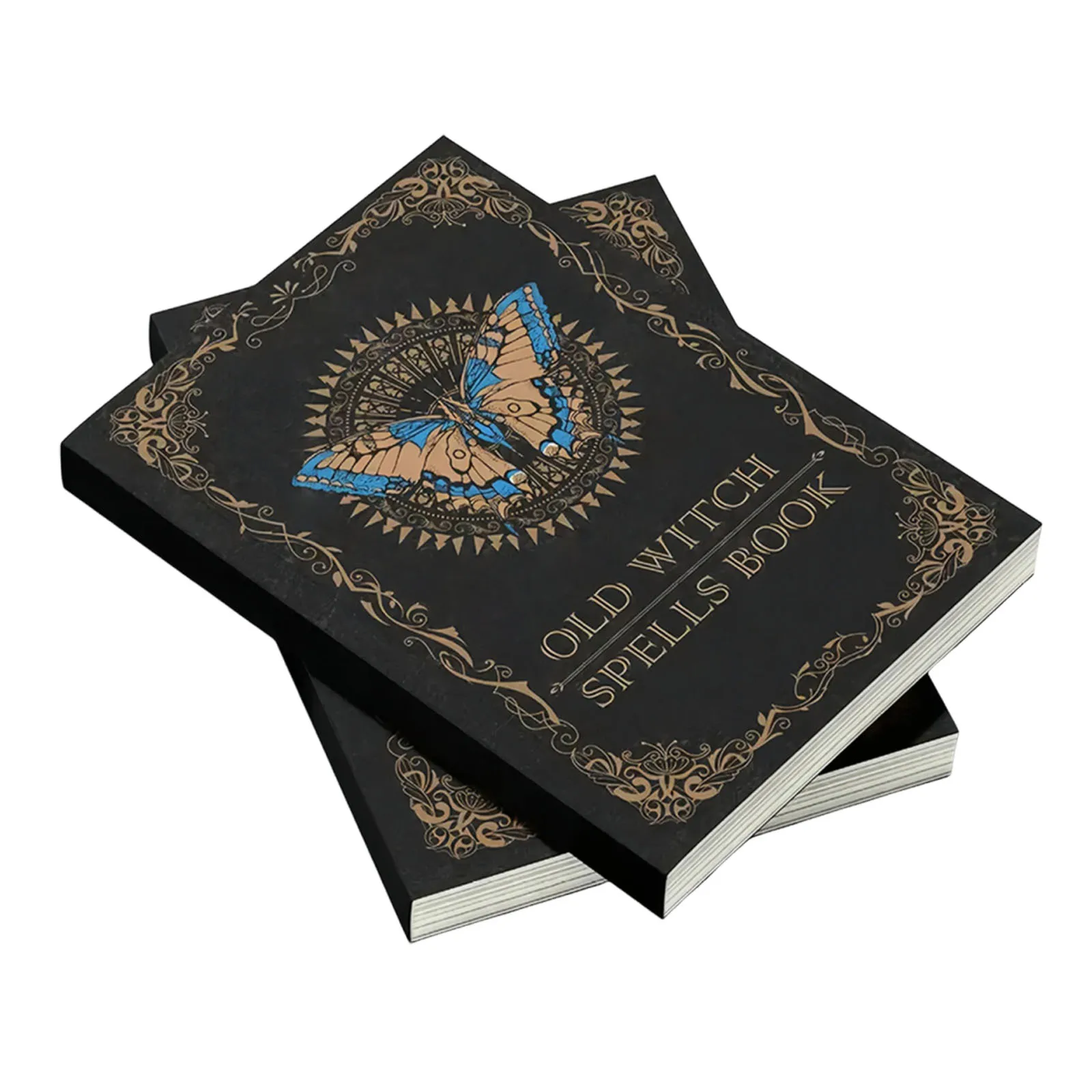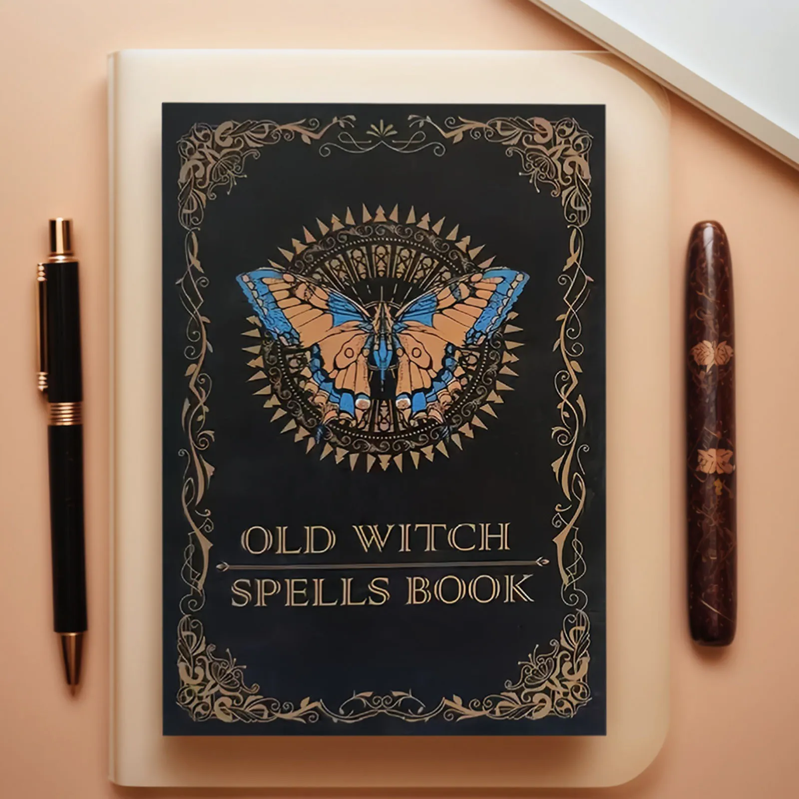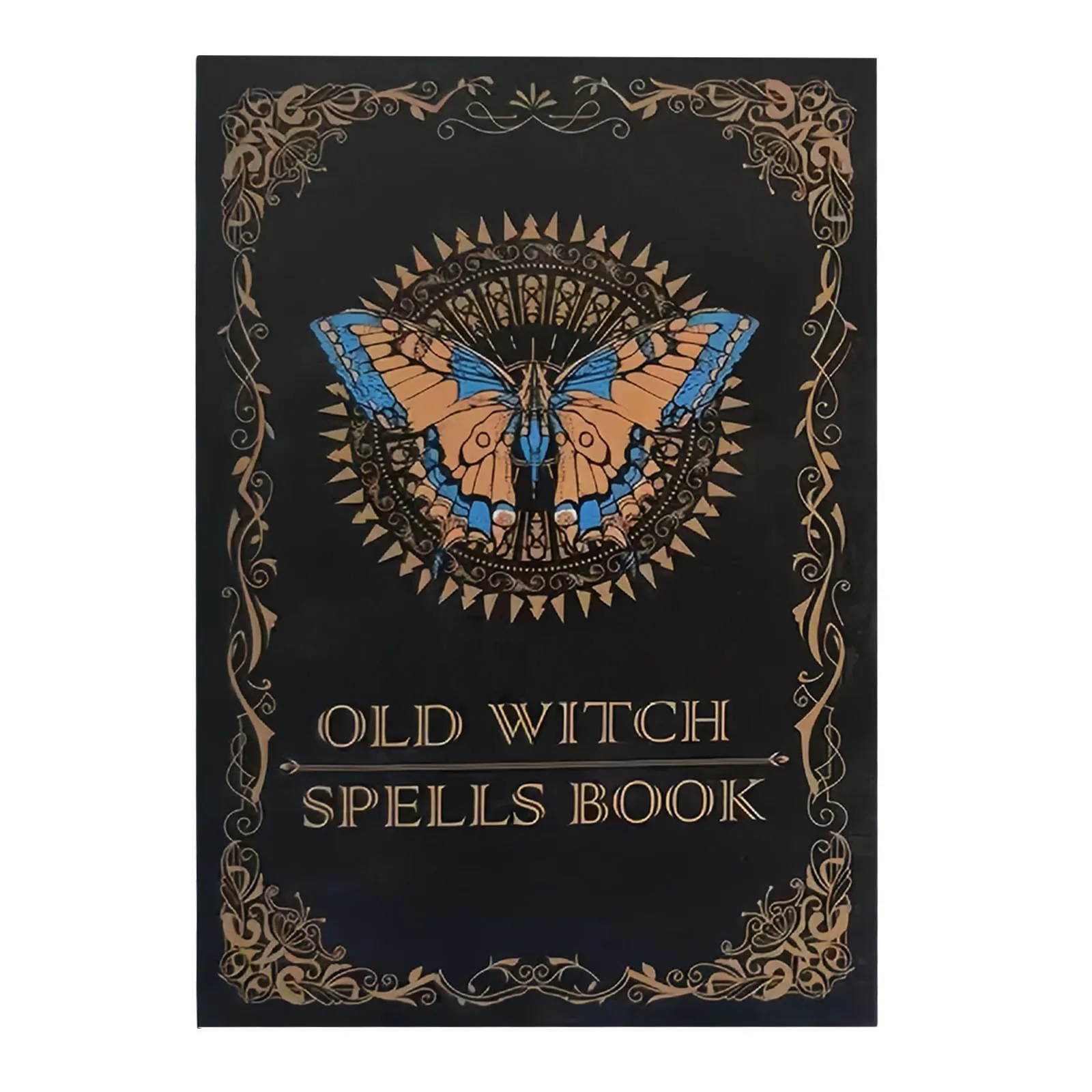 Ancient Magic Book with Intricate Golden Butterfly Cover & Mystical Symbols - Old Witch Spells Book for Wiccan